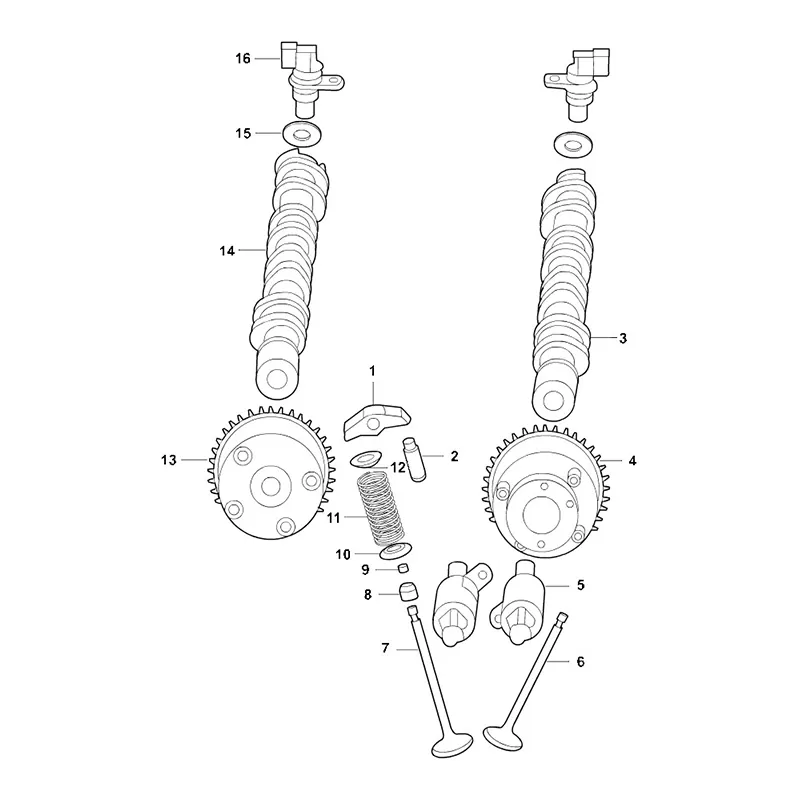 ·The timing gear ensures a strictly matched speed ratio between the two via mechanical connections (gear meshing, chain or belt drive) – typically, the crankshaft rotates twice for every rotation of the camshaft.